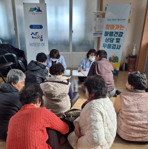 사업에서는 11개 읍면을 대상으로 산청군 정신건강복지센터 전문인력이 직접 마을을 찾아 지면을 통해 우울검사를 실시하고 검사상 고위험군에게는 심리상담을 제공한다.