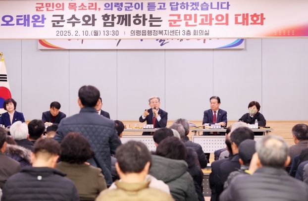 한편 군민과의 대화는 10일 의령읍을 시작으로 11일 가례면·칠곡면, 13일 유곡면·궁류면, 14일 용덕면·정곡면, 17일 지정면·낙서면, 18일 부림면·봉수면, 19일 대의면·화정면까지 13개 읍·면의 차례대로 개최된다.