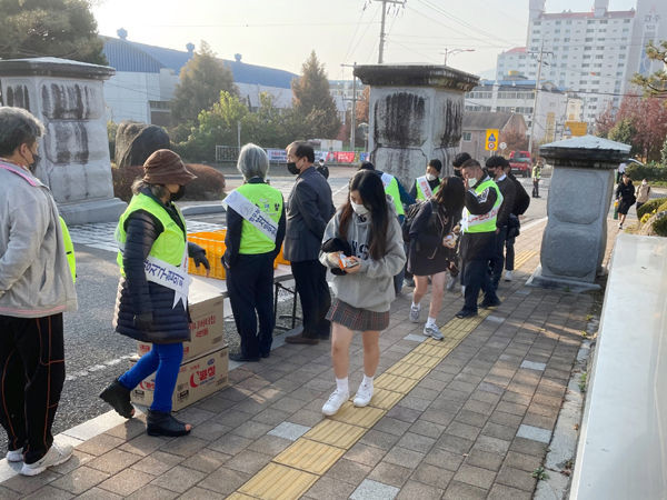 등교시간에 맞춰 실시한 이날 활동은 정구상 회장을 비롯한 법사랑 회원 10여명과 정병주 교장과 학교 선생님들이 참여했으며, 이들은 등교하는 학생들에게 빵과 우유를 나눠주며 학교폭력이 발생할 경우 대응하는 법, 신고요령 등 이를 예방하기 위한 방법 등을 학생들에게 홍보하였다.