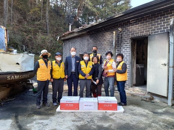 해당 가구는 지난 10월 30일 가건물 화덕에서 발생한 불씨로 주택화재 피해를 입었으며, 이날 함양 천령·안의면적십자봉사회와 안의면 전일옥 면장 등이 함께 피해농가를 방문하여 구호물품을 전달하고 신속한 화재복구와 안정적인 생활을 응원했다.