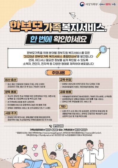 [경남도민뉴스=백형찬 기자] 한부모가족을 위해 분야별 정부지원 복지서비스를 모은 '2025년 한부모가족 복지서비스 종합안내서'를 발간합니다. 언제, 어디서나 필요한 정보를 쉽게 확인할 수 있도록 소책자, 전단지, 전자책 등 다양한 형태로 제작하여 배포합니다.