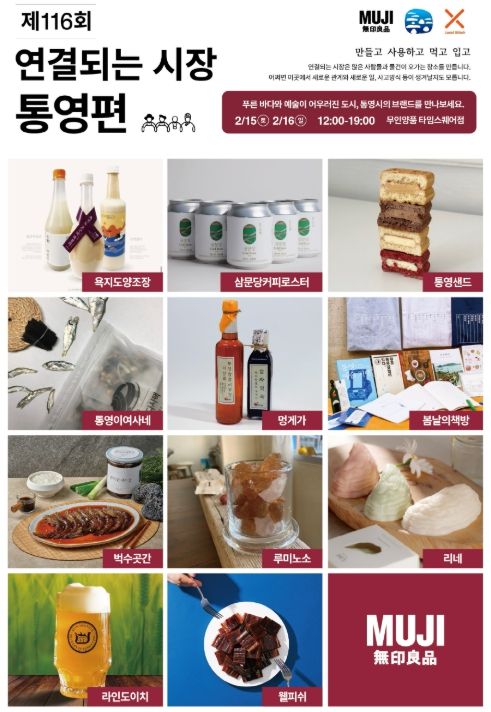 이번 행사는 영등포 타임스퀘어 2층에 위치한 무인양품 매장 앞 팝업스토어 부스에서 11개 통영 로컬 브랜드팀이 참여해 지역에서 성장하고 있는 브랜드들의 판로 확대를 돕고, 소비자들에게는 통영의 고유한 매력을 느낄 수 있는 특별한 경험을 선사할 예정이다.