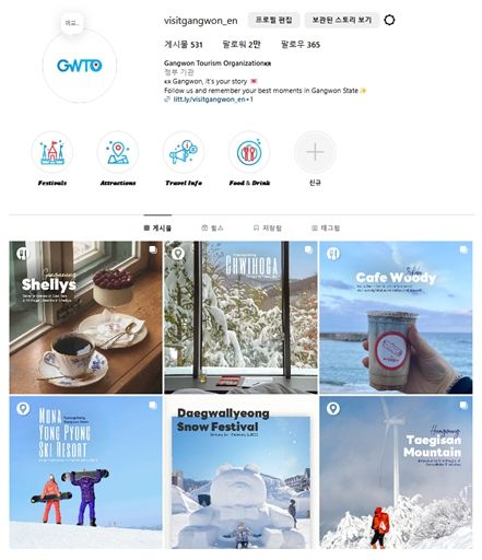 재단은 외국인 팔로워 및 잠재 관광객에게 강원 관광을 효과적으로 홍보하기 위해 다양한 콘텐츠를 활용하여 SNS를 운영해 왔다.