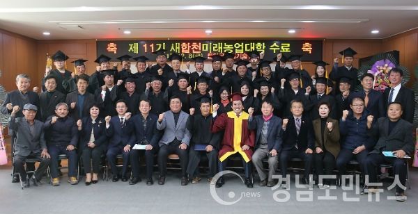 (합천/권연홍 기자) = 합천군(군수 하창환)은 8일 농업기술센터 대강당에서 김성만 군의회의장, 류순철도의원, 기관, 사회단체장과 수료생을 포함한 100여명이 참석한 가운데 제 11기 새합천미래농업대학 수료식 행사를 가졌다.