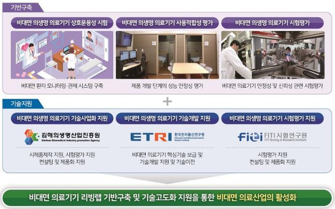 비대면 사업은 2022년부터 2026년까지 125억원 규모로 추진되는 사업으로, 진흥원이 주관하고 FITI시험연구원과 한국전자통신연구원이 공동참여하여 비대면 의생명 의료기기 산업육성을 위한 비대면 디지털 헬스케어 시스템 기술 개발 및 서비스 실증을 위한 인프라를 구축하는 사업이다.