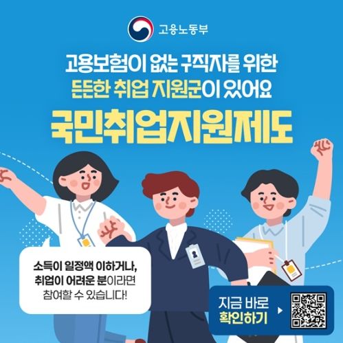 [경남도민뉴스=백형찬 기자] 고용보험이 없는 구직자를 위한 든든한 취업 지원군이 있어요 '국민취업지원제도'.