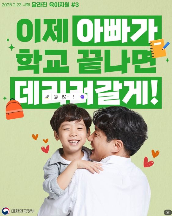 [경남도민뉴스=백형찬 기자] 어린이집 등·하원, 병원 방문 등 자녀를 돌보기 위해 주당 2~25시간 근로시간을 단축할 수 있는데요, 육아기근로시간단축 대상 자녀의 연령이 만 8세 이하에서 만 12세까지로 확대되면서(2.23.~) 초등학교 고학년 시기까지 근로시간을 조정할 수 있게 되었습니다.