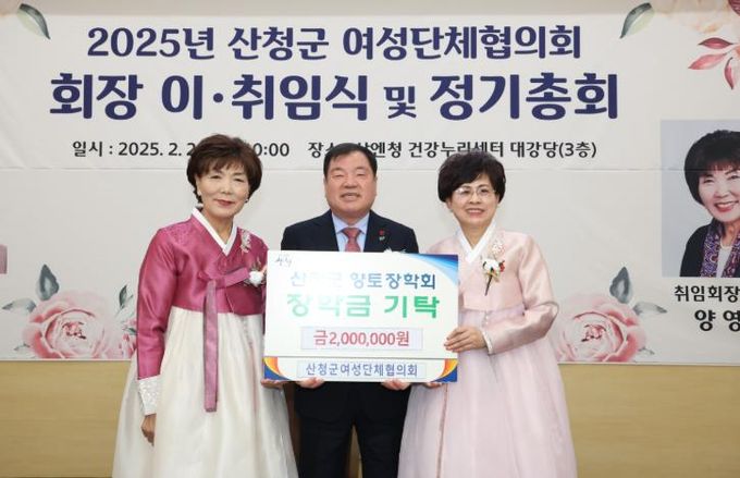 이번 장학금 전달은 산엔청건강누리센터에서 열린 ‘산청군 여성단체협의회 회장 이·취임식 및 정기총회’에서 이뤄졌다.