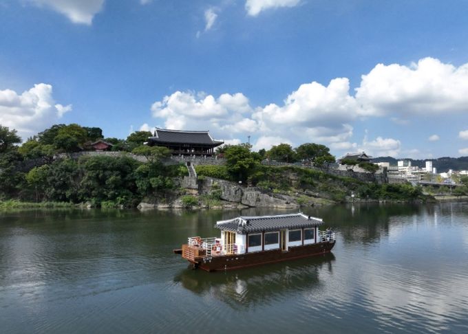 음악분수 시간대에 야간 김시민호를 탑승한다면, 경관 조명으로 물든 진주성 성벽 아래 시원하게 쏘아 올리는 분수쇼를 감상할 수 있어 오직 진주에서만 볼 수 있는 특별한 야경을 만끽할 수 있다.