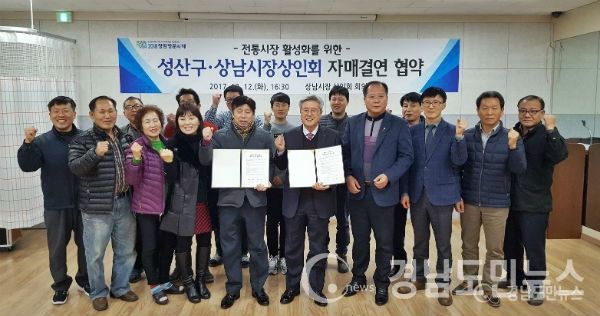 (창원/심지윤 기자) = 창원시 성산구(구청장 양윤호)와 상남시장상인회(회장 류재철)가 지난 12일 상남시장상인회 회의실에서 전통시장 활성화를 위한 자매결연 협약을 체결했다.