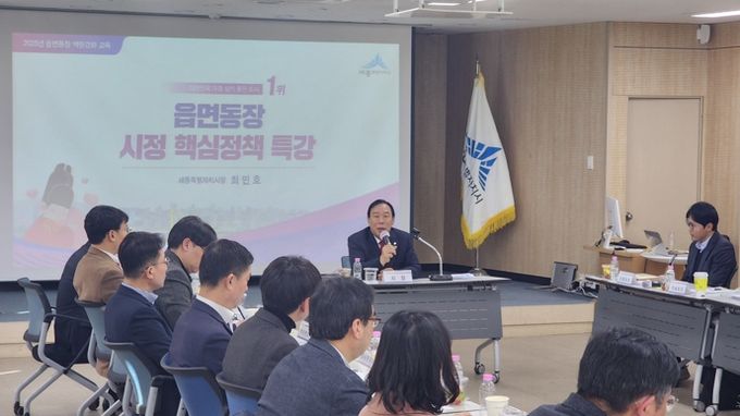 이날 회의에 앞서 최민호 시장은 ‘세종사랑운동’과 ‘시정 5대 비전’ 등 시정 핵심 가치에 대한 특강을 통해 읍면동장들에게 시민들의 목소리를 귀담아듣고 적극적으로 소통할 것을 당부했다.