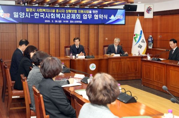 [경남도민뉴스=나희준 기자] 밀양시는 28일 시청 소회의실에서 한국사회복지공제회(이사장 김용하)와 사회복지시설 종사자 처우개선과 복지 증진을 위한 사회복지시설 종사자 상해보험 지원 업무협약을 체결했다.