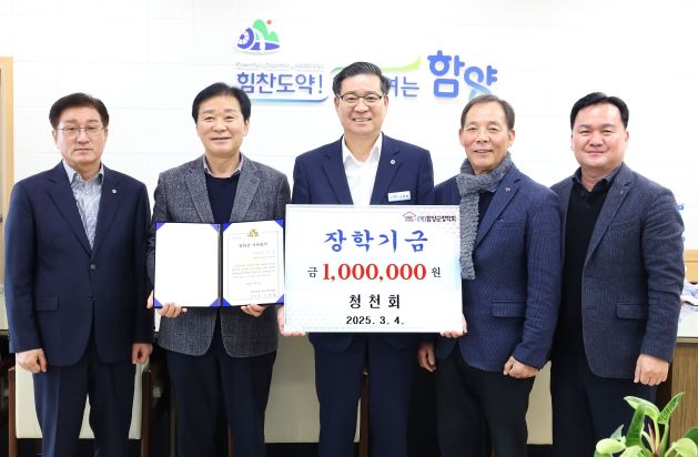 [경남도민뉴스=장광동 기자] 함양군장학회는 3월 4일 함양농고 졸업생으로 구성된 청천회 회원들이 장학금 100만 원을 기탁했다고 밝혔다.