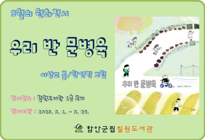 [경남도민뉴스=권중환 기자] 함안군립 칠원도서관은 3월 한 달간 이상교 작가의 그림책 ‘우리 반 문병욱’의 원화를 전시한다.