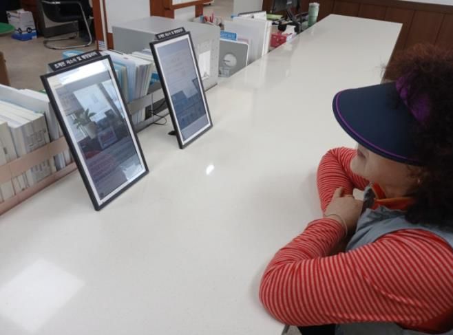 이를 위해 민원 방문이 많은 민원실과 면장실에 가로 200mm, 세로 320mm 크기의 스마트 디지털 액자를 설치해 정보를 제공한다.