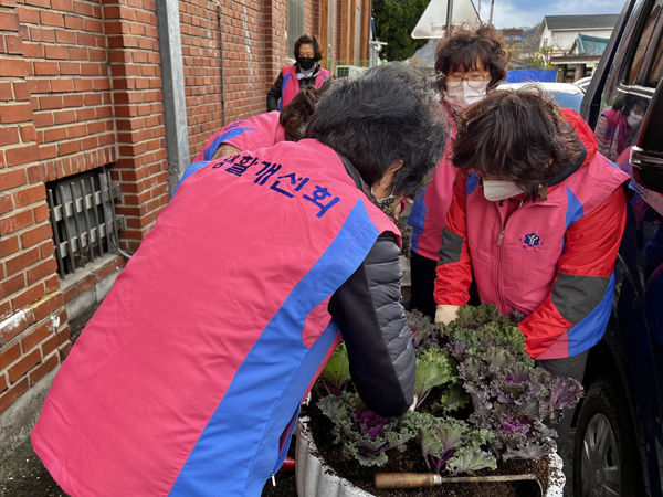 이날 생활개선회 회원 20여명은 쌀쌀한 날씨에도 불구하고 면사무소 및 우체국 주변에 설치된 대형화분 20여개에 기존 여름꽃과 잡초를 제거하고, 겨울꽃인 꽃양배추 200여본을 식재하여 안의면 시가지 꽃길 만들기 사업 참여하여 안의면을 찾아오는 많은 관광객과 지역주민들에게 아름다운 경관을 제공하는데 이바지 하였다.