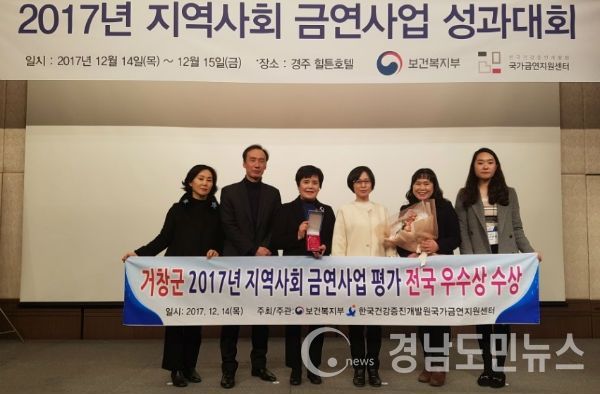 (거창/최병일) = 거창군(군수 양동인)이 보건복지부에서 실시한 2017년 금연환경조성 분야 평가에서 전국우수기관으로 선정이 되는 영광을 안게 됐다.