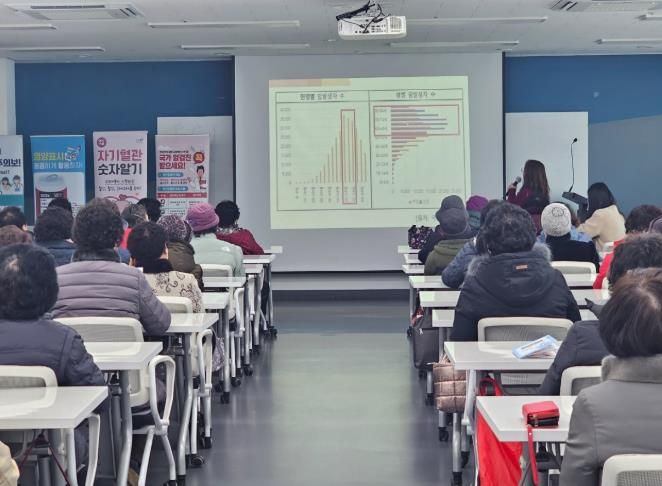 또한 도서 지역민들에게 검진의 중요성을 안내하고자 지난 5일 사량면 이장단 회의에 국가암검진 교육을 시작으로 4월 초에는 욕지면과 한산면 이장단 회의에서도 교육할 예정이다.