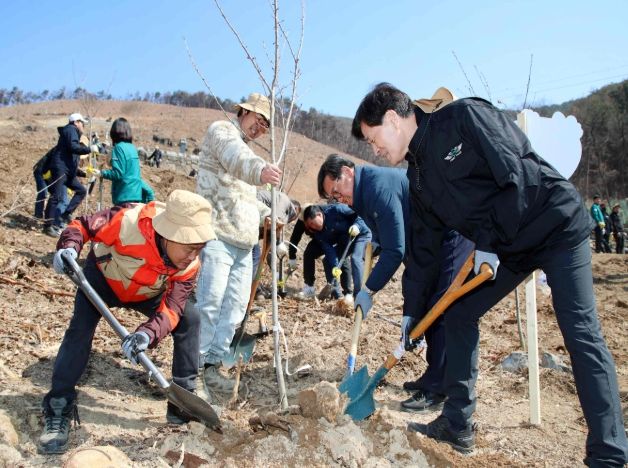 이날 행사에는 안병구 밀양시장을 비롯해 공무원 및 지역 주민 등 250여 명이 참여해 산수유, 벚나무 3,000여 그루를 심었다.