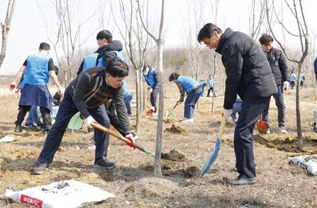 행사에는 진 구청장을 비롯해 환경단체 회원, 가족 등 150여 명이 참여했다. 참가자들은 비료를 주며 나무의 생장 상태를 살폈다.