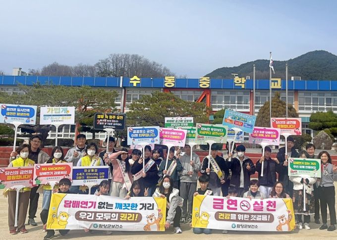 이번 캠페인은 함양군보건소와 함양교육지원청이 협력하여 수동중학교와 안의중학교에서 진행됐으며, 각 학교의 재학생과 교직원들이 함께 참여해 관내 아동과 청소년들에게 흡연의 위험성을 알리고, 건강한 생활 습관을 형성하도록 하는 데 중점을 두었다.