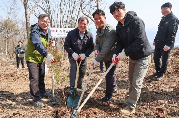 행사에서는 3인 1조로 편백나무 6860주를 식재하며 식목일을 기념했다.