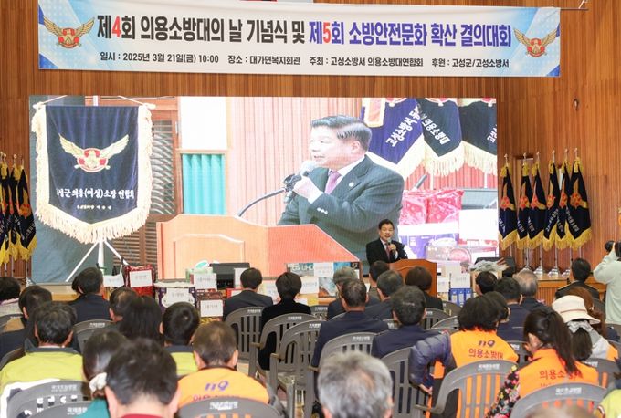 [경남도민뉴스=김태수 기자] 고성군은 2025년 3월 21일 '제4회 의용소방대의 날'을 맞아 대가면 복지회관에서 열린 기념행사에 참석하여 고성군 의용소방대원들의 헌신과 노고를 격려했다.