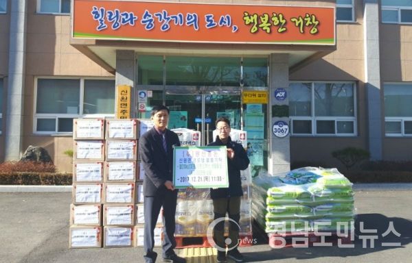 (거창/최병일) = 거창군 신원면(면장 김득환) 덕산리에 위치한 (주)원산종돈(대표 신봉원)은 지난21일 신원면사무소를 방문해 이웃돕기 물품을 기탁했다.