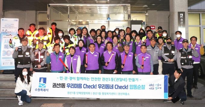 이번 합동 순찰은 권선1동 주민자치회(회장 이상대) 및 권선1동의 주관으로 진행됐으며, 수원남부경찰서 권선파출소의 협조 속에 이재식 의장을 비롯해 30여 명의 지역 단체 회원들이 함께 안전한 지역사회 조성을 위한 뜻을 모았다.