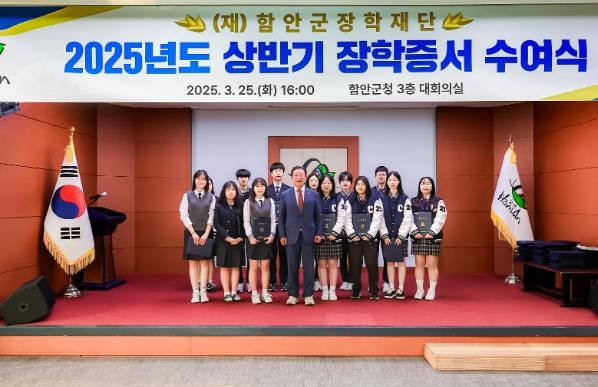 [경남도민뉴스=권중환 기자] 지역교육발전과 미래 인재양성을 위해 설립된 (재)함안군장학재단의 2025년 상반기 장학증서 수여식이 지난 25일 오후 4시 학생과 교사 및 관계자 등 150여 명이 참석한 가운데 함안군청 대회의실에서 열렸다.