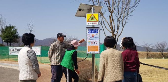 해충기피제 분사기가 신규 설치된 장소는 묘산면 파크골프장, 가야면 황산2구 경로당, 초계면 단봉산 입구(초계중학교 뒤편), 적중체육공원, 쌍백면 평구1구 마을회관, 삼가면 내동경로당 및 백학산 입구(굴다리) 7개소이며, 진드기 고위험지역 및 야외활동 시 주민 다수가 쉽게 이용할 수 있는 장소에 설치했다.