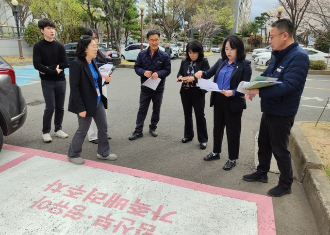 남구 보건소 및 도시관리공단 담당자와 함께한 이 날 점검에서는, 현재 보건소에서 운영 중인 가족배려주차구역 2면에 대한 이용자 접근성과 시인성, 이용 실태를 점검하고 도안의 적절성, 유지관리 문제 등 운영상의 개선 사항과 차후 설치 확대 방안이 검토됐다.