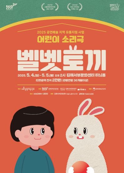 [경남도민뉴스=최미정 기자] 김해문화관광재단은 다가오는 가정의 달과 어린이날을 맞이하여 5월 4일과 5일 양일간 어린이 소리극‘벨벳토끼’를 김해서부문화센터 하늬홀에 선보인다.