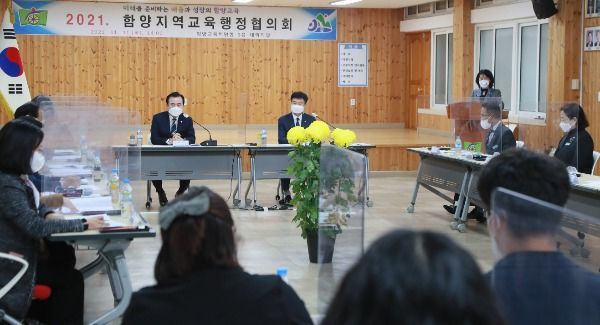 [경남도민뉴스] 함양군과 함양교육지원청은 11일 교육지원청 3층 대회의실에서 지역의 현안 논의와 교육․행정의 화합을 위한 2021 함양교육행정협의회를 가졌다.