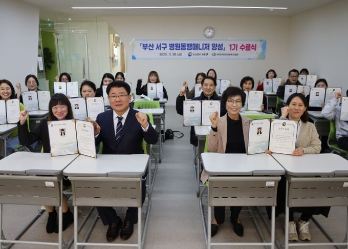 [경남도민뉴스=신석주 기자] 부산 서구는 지난 3월 24일부터 28일까지 5일간 총 40시간의 과정으로 진행한 '병원 동행 매니저 양성 교육' 1기 수료식을 개최했다.