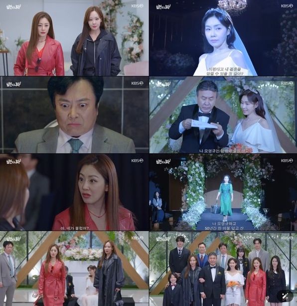 그런가 하면 나라와 유진은 강렬한 빨강, 검은색 코트를 입고 결혼식장에 화려하게 등장해 모두를 놀라게 했다. 이어 두 자매는 웨딩드레스를 입은 미란과 팽팽한 신경전을 벌이며 인사를 나눠 보는 이들의 손에 땀을 쥐게 만들었다.