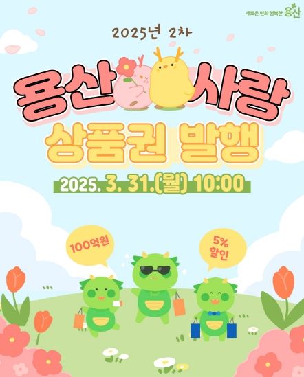 [경남도민뉴스=김완호 기자] 서울 용산구가 지역 경제 활성화를 위해 오는 3월 31일 오전 10시, 총 100억 원 규모의 ‘용산사랑상품권’을 추가 발행한다.