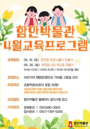 한편, 월별 프로그램에 대한 자세한 내용은 순차적으로 게재될 예정이다. 기타 문의사항은 함안박물관으로 하면 된다.