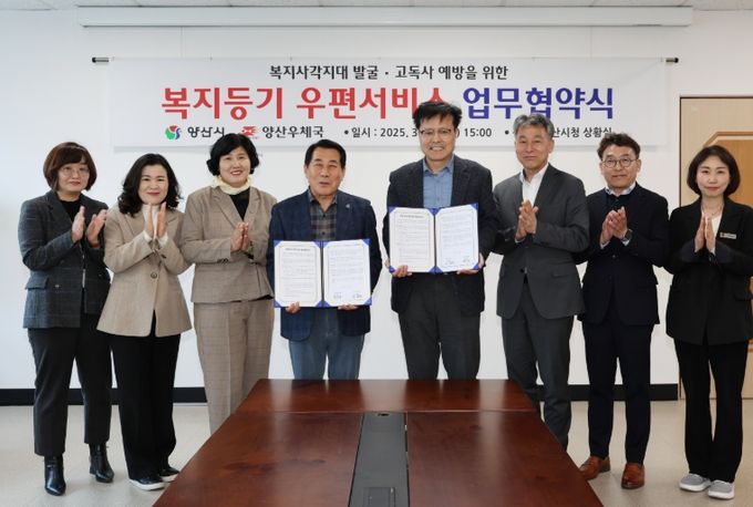 나동연 양산시장은 “복지등기 우편사업이 위기가구와 사회적 고립가구를 선제적으로 발굴하는 효과를 가질 것으로 크게 기대한다”며 “이번 협약을 시작으로 앞으로도 유관기관, 지역사회와 함께 더욱 촘촘한 사회 안전망을 구축해 복지 사각지대를 해소해 나가겠다”고 전했다.
