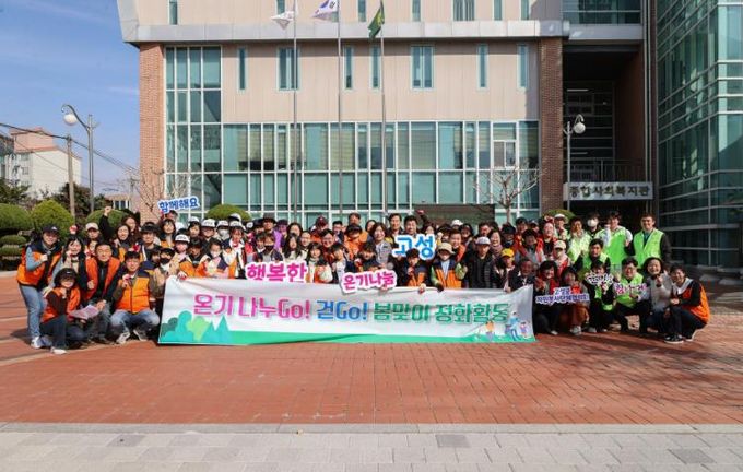 [경남도민뉴스=김태수 기자] 고성군은 3월 29일 고성군 자원봉사단체협의회 회원 120명과 함께 고성읍 동외리 일원에서 ‘온기나누Go! 걷Go! 봄맞이 환경정화 연합 활동을 진행했다.