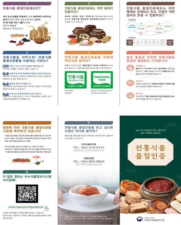 현재 전통식품 품질인증 업체는 421개소 724개 품목으로, 인증현황은 국립농산물품질관리원 누리집 ‘업무소개’ 목록의 ‘우수식품정보시스템’에서 확인이 가능하다.