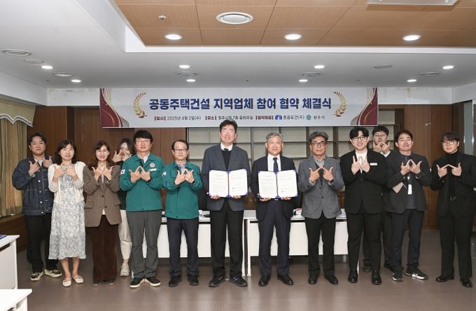 [경남도민뉴스=류종길 기자] 원주시와 중흥토건㈜(대표 이경호)는 4월 2일 오전 11시 시청 7층 중회의실에서 원강수 시장을 비롯해 시공사 관계자 등이 참석한 가운데, ‘공동주택 건설사업 지역업체 참여 협약’을 체결했다.