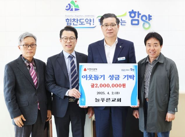 [경남도민뉴스=장광동 기자] 함양군은 지난 2일 늘푸른교회(목사 이동호)에서 산청과 하동, 김해 등 영남권에서 대형 산불이 연이어 발생되고 있는 피해지역을 위해 성금으로 200만원을 기탁했다고 밝혔다.