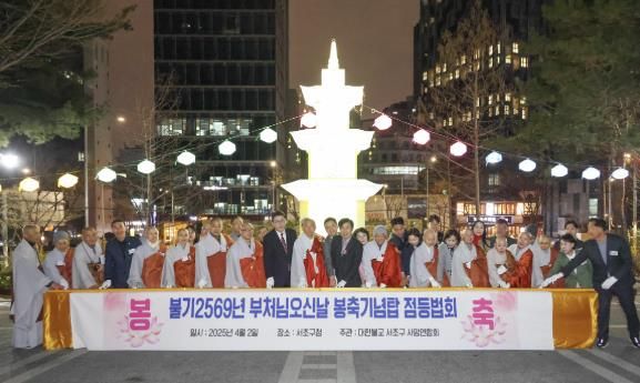 [경남도민뉴스=김완호 기자] 서울 서초구는 불기 2569년 부처님 오신 날(5월 5일)을 맞아 2일 서초구청 광장에서 ‘봉축탑 점등법회’를 개최했다고 밝혔다.