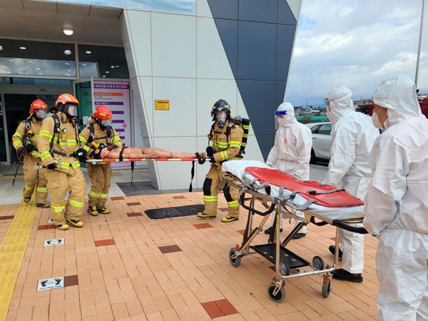 이번 합동훈련은 코로나19 관련시설 내 화재취약요인 제거 및 화재 대응능력 강화 및 예방을 위해 관련 소방서와 보건소 관련인원 30여명이 참여하였다.