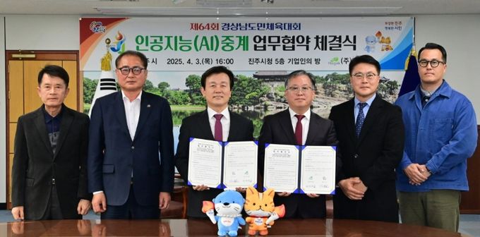진주시는 3일 시청 기업인의 방에서 스포츠 인공지능(AI) 중계업체인 ㈜호각(HOGAK)과 업무협약을 체결하고, 경남도민체전 기간 펼쳐지는 인기종목의 경기에 대해 진주시 공식유튜브 채널을 통해 AI 생중계 및 다시보기를 실시한다고 밝혔다.