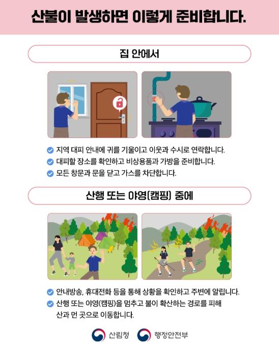 아울러, 도민께서는 산불을 발견하면 즉시 산림관서나 119, 경찰서ㆍ소방서 등에 신고해 주실 것을 당부하는 한편, 산불관련 위반행위로 행정처분을 받지 않도록 모두의 참여를 강조했다.