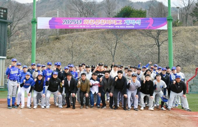[경남도민뉴스=표재민 기자] 2025 화천 산천어 야구리그 개막식 및 개막경기가 6일 간동면 간동야구장에서 최문순 군수, 박대현 도의원, 조웅희 군의회 부의장, 송호관 군체육회장을 비롯한 선수들이 참석한 가운데 열렸다.