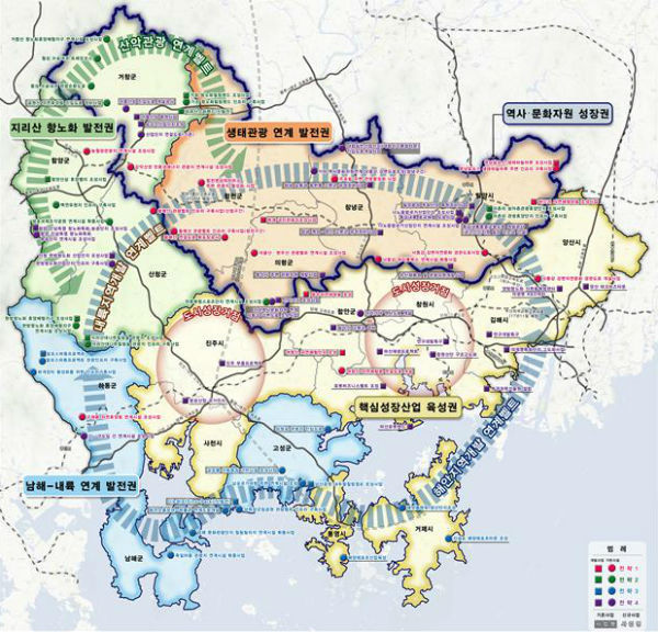 * (성장촉진지역 10개 시·군) : 밀양시, 의령·창녕·고성·남해·하동·산청·함양·거창·합천군