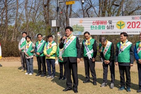 행사에 참석한 이호귀 의장·복진경 부의장·이동호 운영위원장·강을석 행정안전위원장·이도희 경제도시위원장·전인수·윤석민·황영각·이성수·김진경·손민기 의원은 매봉산 산책로에 조경수를 식재하며 산불 예방 및 탄소중립 실천에 동참했다.